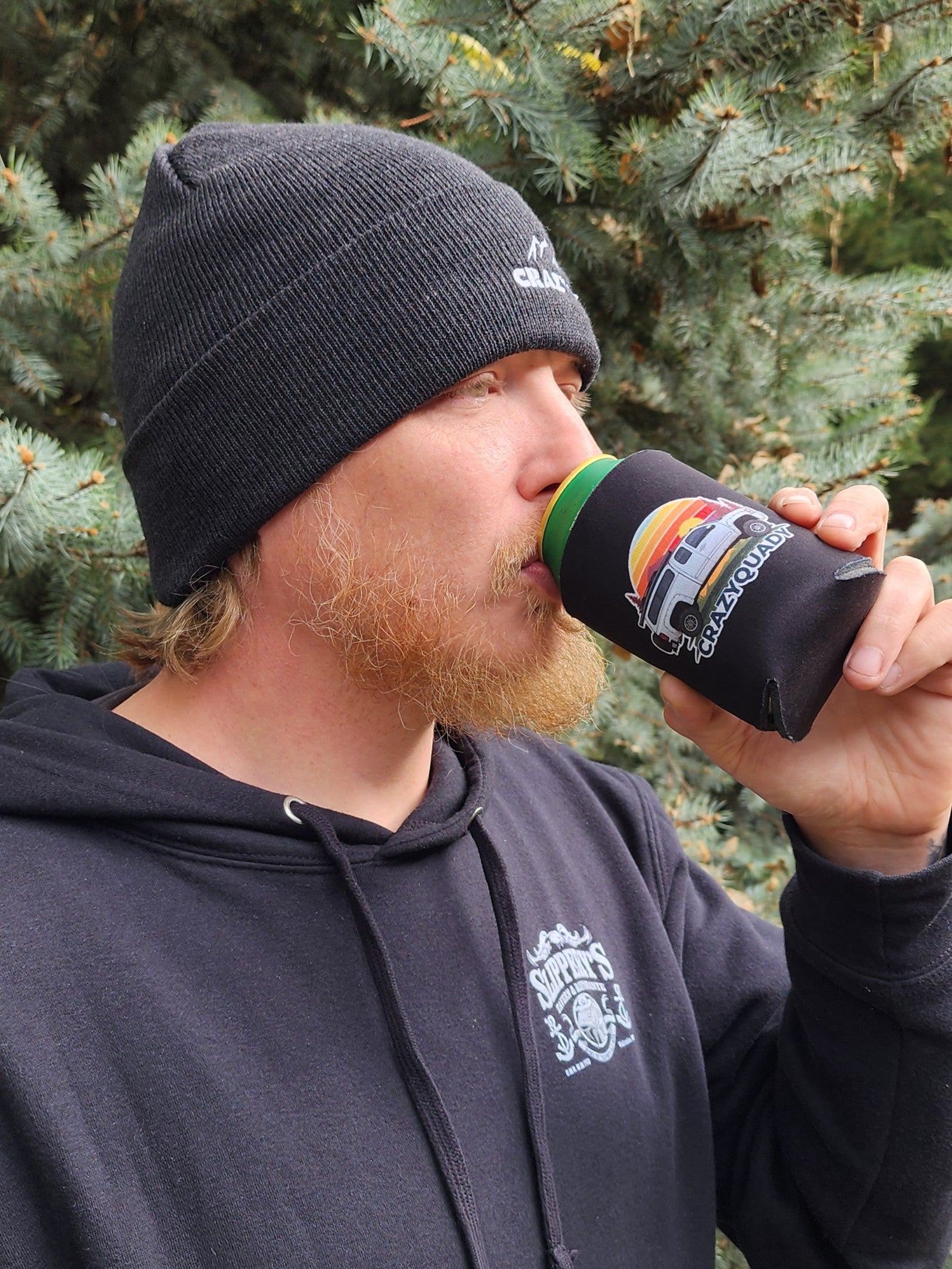 Keep your beverage of choice ice cold with this CrazyQuady truck camper can cooler! The full color design is on the front and back. Grab an extra for your homie! Cheers!