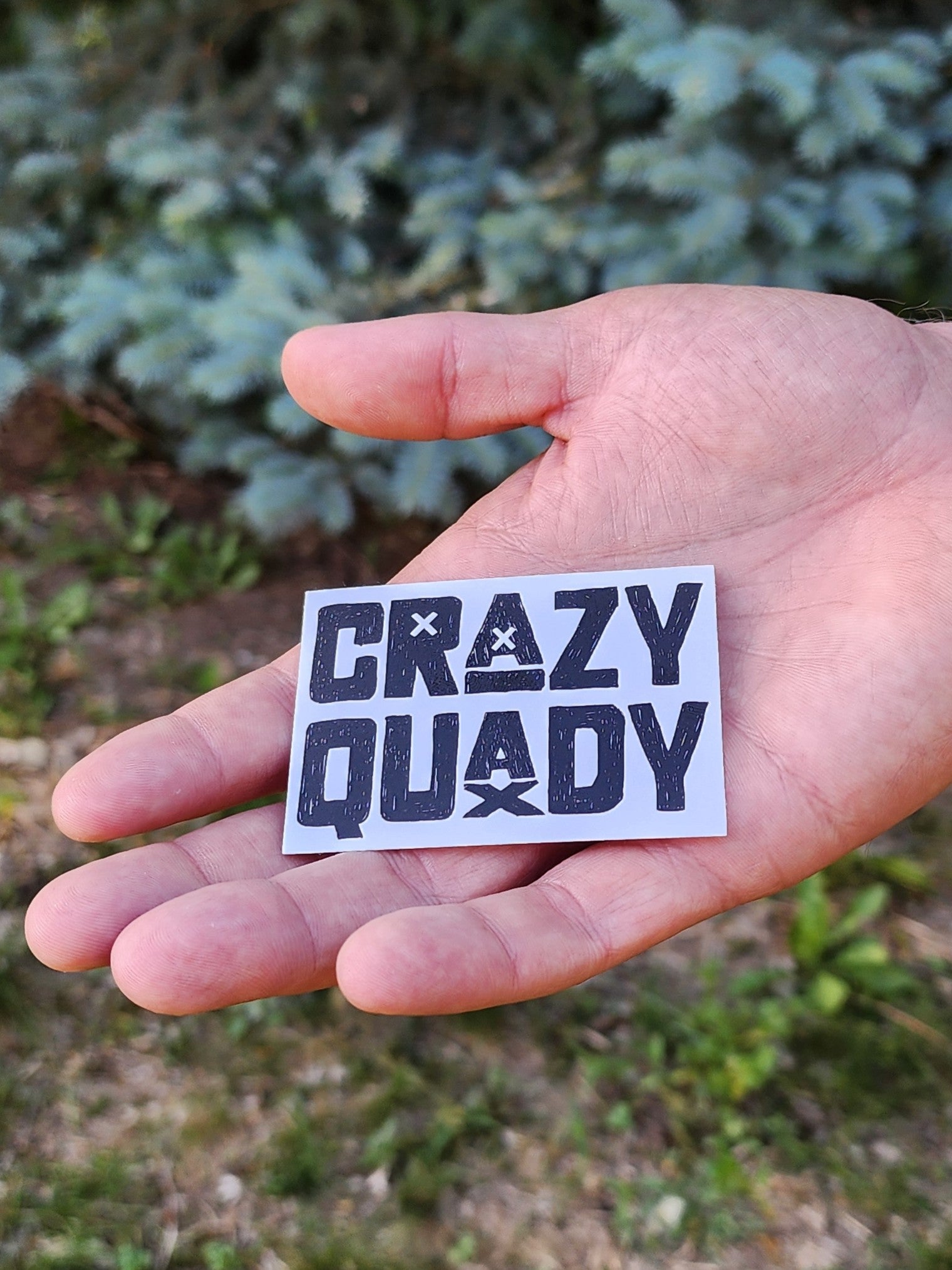 Grab the OG CrazyQuady X sticker while you can! Decorate all the things with the first run of stickers! Thick, durable vinyl protects the sticker from scratching, rain and sunlight. Measures 3" x 2" (25% DISCOUNT SHOWS IN CART.)